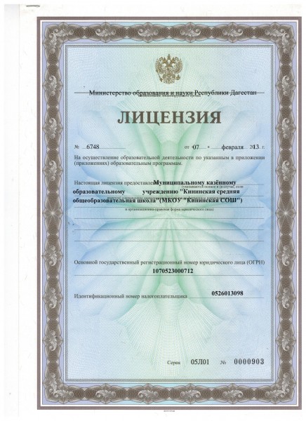 | Полное наименование образовательной организации* | Муниципальное казенное общеобразовательное учреждение «Кининская средняя общеобразовательная школа» |