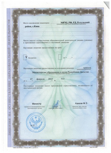 | Адрес местонахождения образовательной организации* | 368700, республика Дагестан, Рутульский район, село Кина |